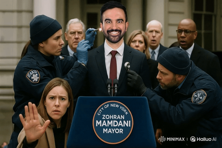 The mayor smiles — a perfect, measured display of white teeth. Cameras flash in rapid succession. Then, without warning, his face freezes, his eyes widen, and his body goes still.