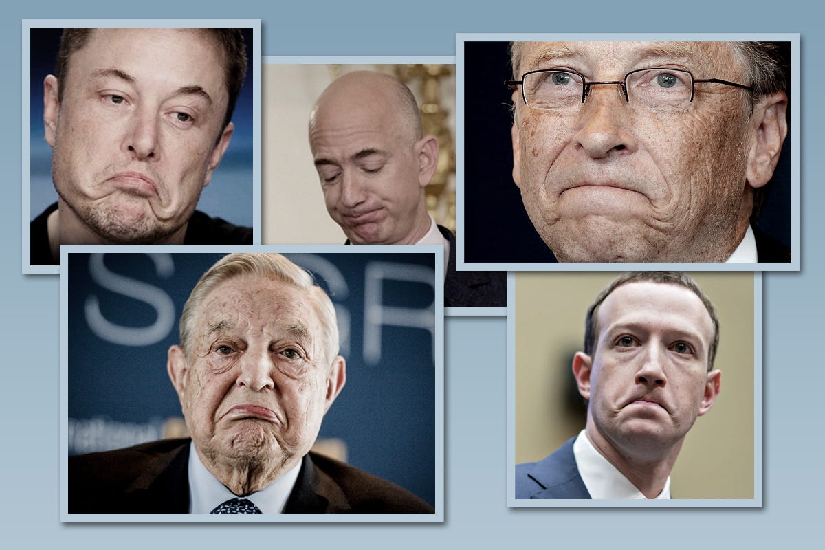 These sad, lonely elites have been mistreated and abused by millions of cruel conspiracy theorists around the globe. Just look at those poor, unhappy faces! For as little as $10 per day, you can make a difference in the life of a tormented philanthropist.